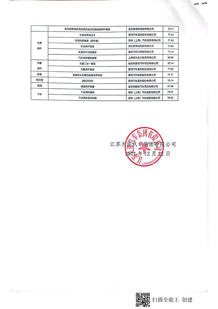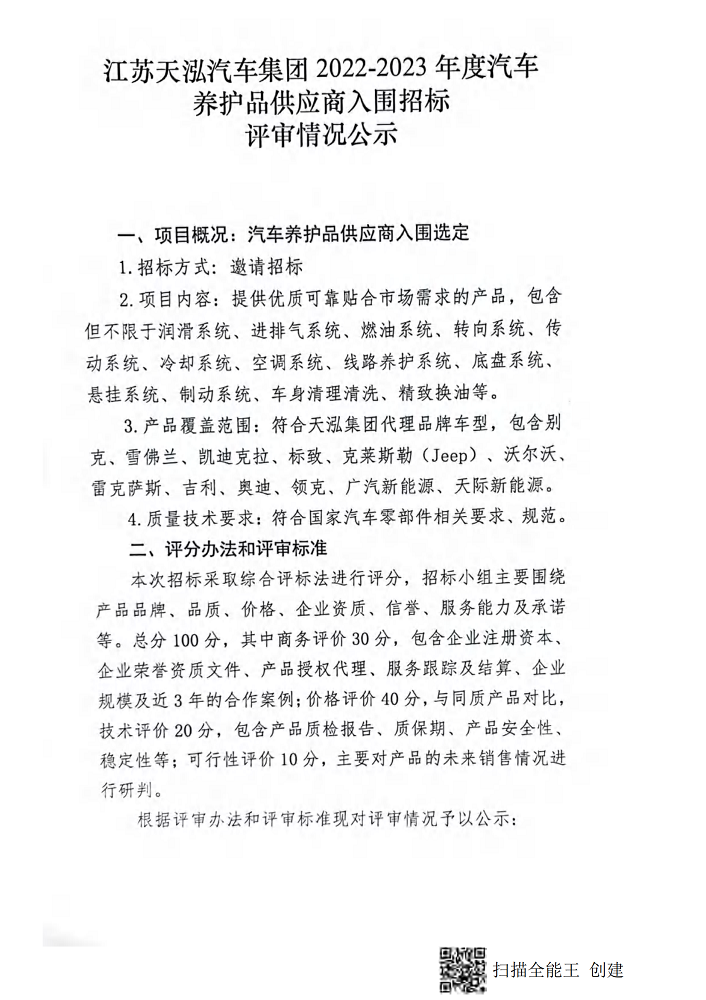 附件:江苏天泓汽车集团2022-2023年度汽车养护品供应商入围招标评审情况公示