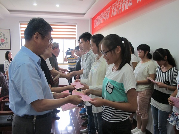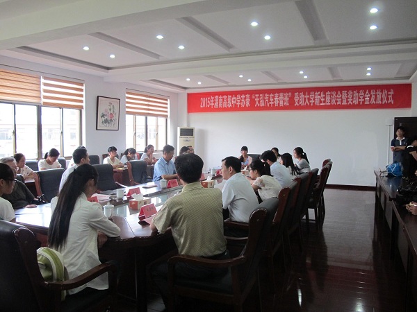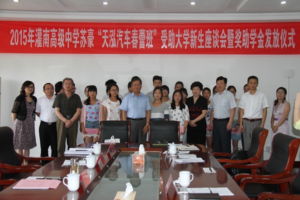 2015年8月25日,苏豪控股集团副总裁沈祥元,控股集团党办、工会联合会负责同志,开云手机入口官网工会主席、副总经理沈建民,共赴江苏省灌南高级中学看望“天泓汽车高中春蕾班”的高考录取新生,为他们发放助学金并举办座谈会。江苏省儿童少年福利基金会副理事长陈美英,灌南县县委书记夏苏明,县妇联、县扶贫办相关负责同志,灌南高级中学校长、教师及18名“春蕾班”高考录取新生参加了座谈。