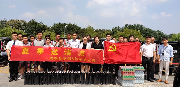 8月14日下午,天泓瑞尧、标远党支部联合开展了夏季送清凉公益活动,为徐庄顺丰速运营业部的员工们送去清凉慰问品。