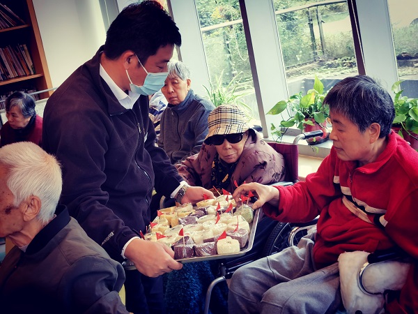 10月25日,九九重阳节当天,开云手机入口官网党委下属江苏天泓汽车服务有限公司党支部党员走进南京聚宝山颐养中心关心看望老人,给老人们带去了重阳糕和水果,与老人们共度佳节。登“糕” 插“茱萸” 寄托了对老人们身体健康、生活步步高的祝福。