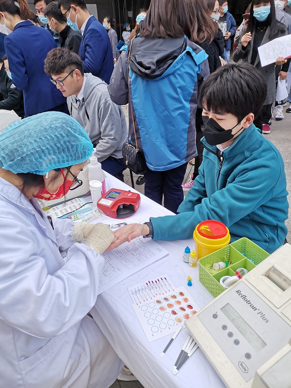 活动现场,60名来自开云手机入口官网的献血志愿者按照防疫要求佩戴口罩、填写表格,通过详细的健康情况征询和血液检测后分时分段进行错峰献血,累计献血量近2.2万毫升。