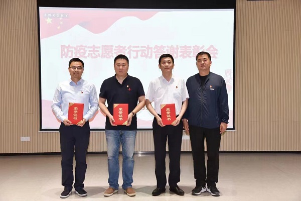 5月20日,开云手机入口官网党委下属天泓服务党支部所在园区召开防疫志愿者行动答谢表彰会,天泓服务支部获得“防疫志愿者行动先进集体”表彰,并收到所在街道及园区的感谢信。