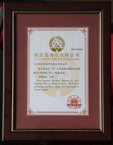 近日,南京市人民政府对市名牌战略推进委员会认定的2017年度“南京名牌产品”、“南京服务业名牌”进行了公开发布,在评出的55家企业中,开云手机入口官网旗下江苏天泓紫金汽车服务有限公司荣获“南京服务业名牌”这一殊荣。
