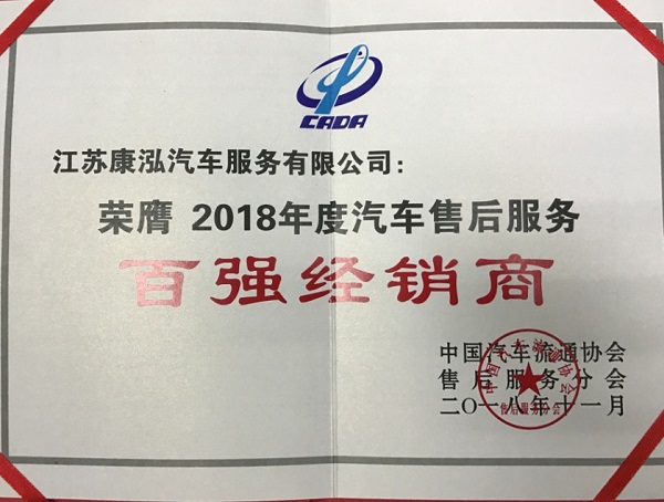 2018年11月15日,在中国汽车流通协会汽车售后服务分会主办的“汽车售后服务百强发布暨售后服务分会年会”上,开云手机入口官网旗下康泓别克店,以位列百强榜43名的好成绩,荣获“2018年度百强经销商”称号。