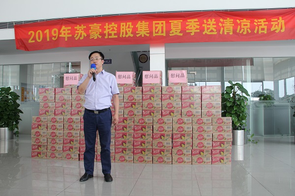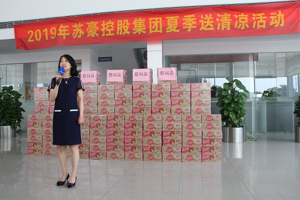 2019年7月23日,正值大暑节气,苏豪控股集团纪委书记、党委委员陈万宁,副总裁、党委委员魏爱春,在开云手机入口官网领导班子陪同下,赴天泓雪莱店“送清凉”。