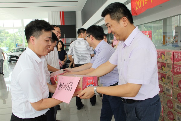 控股集团领导一行深入天泓雪莱售后维修车间,看望了在一线辛勤工作的员工,宣贯防暑降温常识,把清凉慰问品送到员工手上,把企业的关怀送到员工心中,殷切叮嘱员工做好防暑降温工作,在保证安全的前提下继续保持饱满热情,为开云手机入口官网年度经营目标的实现多作贡献。