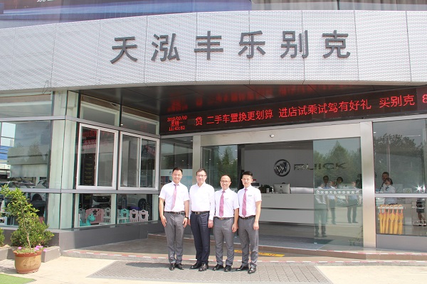 王永清总经理一行先后参观了天泓丰乐的销售展厅、维修车间,听取了天泓丰乐的工作汇报,认真询问了重点车型销售情况、售后预约维修情况等,并就目前的行业形势及滁州地区的市场情况与我司进行了充分沟通及交流。王永清总经理充分肯定了天泓集团为上汽通用三大品牌(凯迪拉克、别克、雪佛兰)在苏皖地区的发展所做的重要贡献,希望天泓丰乐能顶住市场压力,继续深耕细作,保持在当地的市占率。