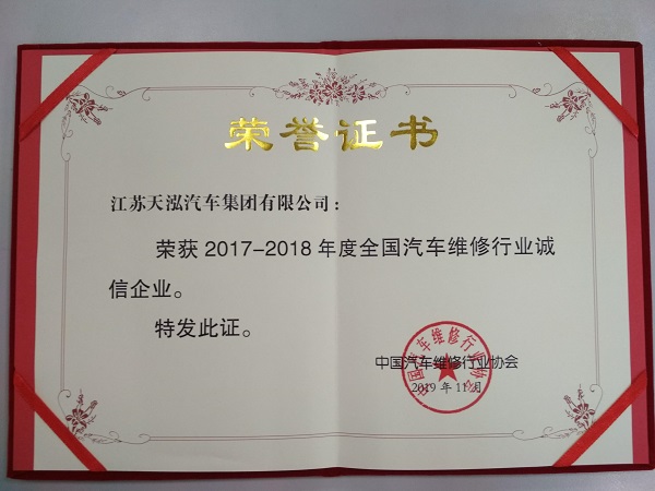 2019年11月21日,中国汽车维修行业协会在宁波召开2017-2018年度全国汽车维修行业诚信企业表彰大会,开云手机入口官网获得全国“诚信企业”称号。