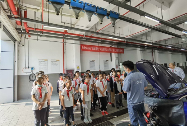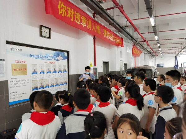 活动中,来自北京东路小学红山分校的43名学生以“迎国庆 颂祖国”为主题,放飞梦想,挥舞手中的画笔表达对祖国母亲的祝福和热爱。学生们参观了“汽车医院”及天泓服务海生工匠工作室,了解了更多汽车知识。