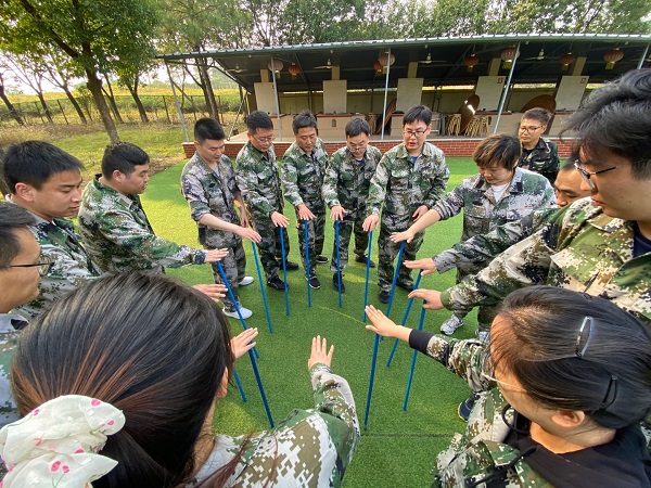 为保障培训效果,此次培训采用积分制分组对抗的形式。参训人员分成4个小组,先后进行了“破冰融合”“珠行千里”“不倒森林”“驿站传书”等项目,通过体验式引导,寓教于乐,启发员工思维,开拓视野,共创共赢。