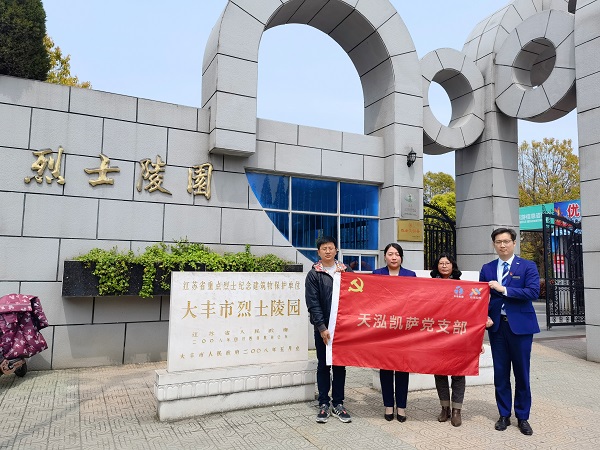 4月14日下午,天泓凯萨党支部组织党员代表参观瞻仰盐城大丰烈士陵园。党员代表们缅怀革命先烈、参观红色纪念馆,通过观看照片、实物、影像等资料,缅怀战火纷飞的硝烟岁月,坚定了学习和传承先烈们坚定理想信念、不怕流血牺牲的革命斗志,在工作岗位上无私奉献、奋发进取。