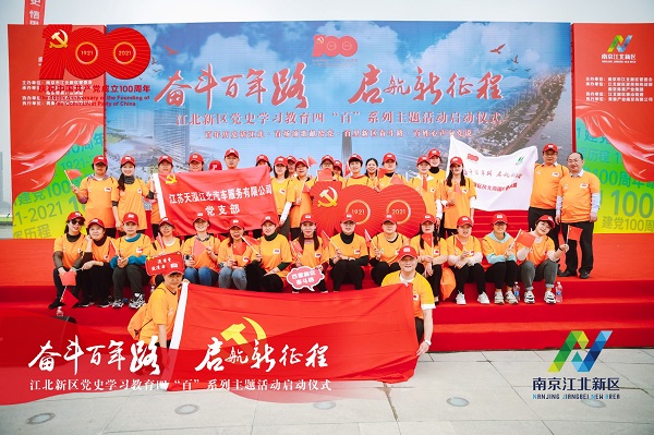 4月23日上午,天泓江北党支部与桥北商圈红色联盟组成方阵,参与了南京江北新区党史学习教育四“百”系列主题活动之“百里新区奋斗路”徒步,天泓江北党支部用昂扬的斗志与饱满的热情,展示了江北新区人的精气神。