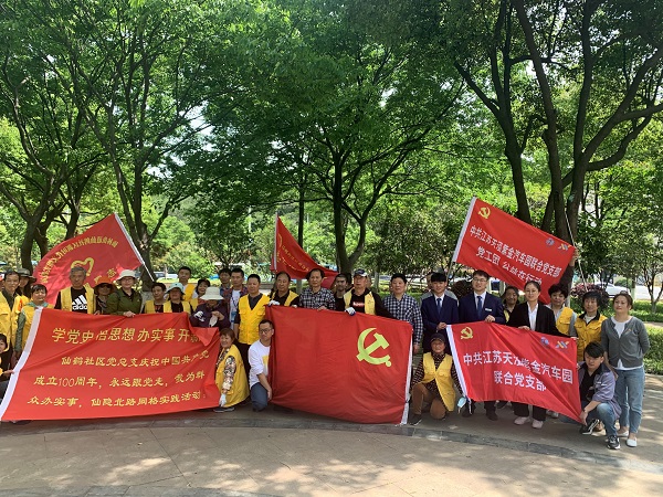 4月30日,天泓紫金汽车园联合党支部协同南京栖霞区仙林街道仙鹤社区党总支开展了“庆建党百年,永远跟党走”之我为群众办实事活动。双方党支部30余名志愿者深入仙隐北路至尧马路段,拿着扫帚、铁锹、环卫钳,对主要道路、花坛及路牙等卫生死角的落叶、杂草、乱丢乱放的白色垃圾、烟头、纸屑等进行了全面清理。经过共同努力,两个路段环境整洁有序,焕然一新。