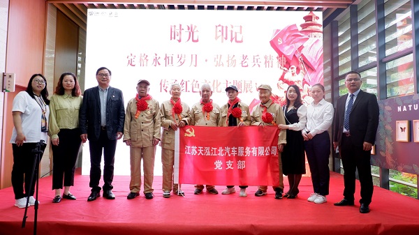 5月4日青年节,由南京江北新区顶山街道办事处主办,顶山街道协晨亲子服务中心承办,天泓江北党支部协办的“时光·印记——定格永恒岁月·弘扬老兵精神”传承红色文化主题展于佛手湖郊野公园举办。活动现场播放了一部关于老兵的纪录片,该纪录片是通过对顶山街道10位老兵为期半年的深入走访拍摄而成。活动中,6位老兵被儿女或搀扶或推着进场,其中参与抗美援朝战争的老兵5人,参加过解放战争的老兵1人,他们年龄最小的86岁,最大的97岁,平均入伍年龄19岁。在建党百年之际,一同回首过往,聆听老兵故事,弘扬老兵精神,发挥党员的先锋模范作用。