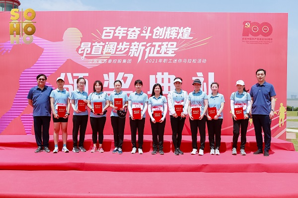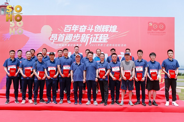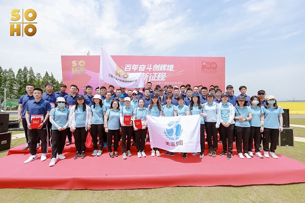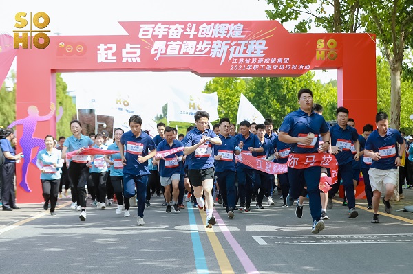2021年5月28日上午,迎着灿烂的朝阳,开云手机入口官网的员工们相聚在上级主管单位苏豪控股集团主办的“百年奋斗创辉煌,昂首阔步新征程”2021年职工迷你马拉松活动现场。来自开云手机入口官网本部及各子公司的职工代表组成“天泓方阵”,身着统一服装,摩拳擦掌,蓄势待发。