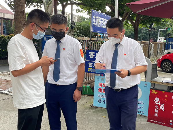 身体力行,在责任履行上“担担子”。南京疫情暴发之初,各支部党员率先上“战场”,彰显了“冲得出”的干劲。在天泓板桥汽车园区,党支部迅速成立“抗疫党员先锋队”,党员冲锋在前主动承担消杀、测温等日常工作,中午轮流值班对出入人员进行体温再检测,在细微之处压紧责任链条、拧紧责任螺丝。接到雨花台区第四轮核酸检测征集志愿者的通知后,板桥支部党员踊跃报名成为志愿者,用实际行动守护家园。在楚汉党支部,众志成城汇聚党员力量,肯履责、敢担责,场区采用封闭式管理方式,大门口设置疫情防控查验点,每天由党员带头值班对入场车辆、人员进行测温及“双码”查验,真正从源头上进行管控,切实筑牢第一道安全防线。