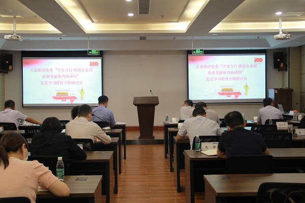 张发松指出,党史学习教育启动以来,集团党委和各支部紧密围绕上级党委工作部署,突出天泓特色,稳步扎实推进,引导党员干部和职工群众从党史中不断汲取智慧和力量,以史为鉴、以学为基、向史而新。同时对下一步工作提出以下要求:一要进一步深化党史学习教育,把学习贯彻习总书记“七一”重要讲话精神作为重要政治任务抓紧抓实,用好相关指定书目,通过学习不断增强“四个意识”、坚定“四个自信”、做到“两个维护”,贯彻落实好上级党委各项决策部署;二要进一步开展好“我为群众办实事”实践活动,努力解决职工群众普遍关心的热点难点问题,增强企业凝聚力、战斗力,不断提升职工幸福感、获得感;三要进一步强化企业管理,提升风险防控意识,促进合规经营建设,做到“效益高、效率高、风险低”,增强推动集团高质量发展的能力;四要进一步弘扬 “天泓人”的优良传统,发扬特别能吃苦、特别能战斗的攻坚精神,勇于迎接困难和挑战,不忘“天泓人”的初心和梦想,奋力完成全年目标任务,为集团“十四五”开好局、起好步打好坚实基础。