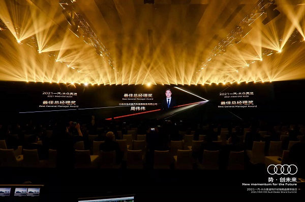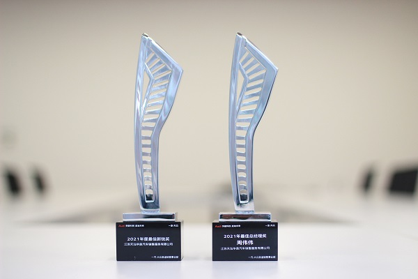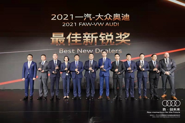 2021年是充满挑战的一年,受疫情及芯片短缺影响,汽车行业饱受冲击。天泓华奥凭借强劲的销售表现、优异的运营质量,在全国600余家一汽-大众奥迪特许经销商中脱颖而出,荣获2021年度“最佳新锐奖”,同时天泓华奥总经理周伟伟荣获2021年“最佳总经理奖”。两份重要奖项的获得,代表了一汽-大众奥迪对天泓华奥的高度认可及肯定。