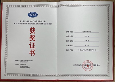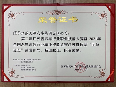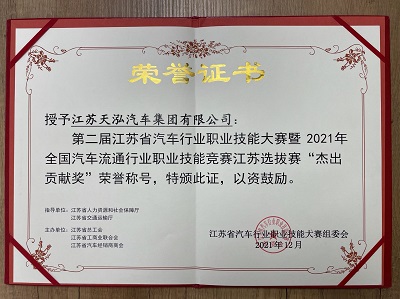 本次大赛是第四届江苏省百万技能人才技能竞赛岗位练兵活动的重要组成部分,由江苏省总工会、江苏省工商业联合会主办,经过选拔,来自全省的近百名选手进入了总决赛。参赛选手在比赛中积极进取、顽强拼搏、勇于创新,开云手机入口官网多名选手脱颖而出。在汽车机电维修项目职工组中,来自天泓楚汉的职工董航荣获“一等奖”,天泓标远邵加伟荣获“二等奖”,康泓朱鑫及天泓江北葛凯荣获“三等奖”。在汽车创新营销项目中,天泓紫金韩超荣获“三等奖”。此外,开云手机入口官网获得大赛“团体金奖”“优秀组织奖”“杰出贡献奖”三项殊荣。