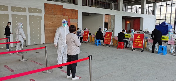 3月28日,南京雨花台区防疫指挥部第六轮核酸筛查在板桥汽贸园紧急召集志愿者,天泓板桥联合党支部第一时间向党员发出倡议。3月29日,党支部王铁飞、滕振华、何流等三名党员同志积极响应号召,全力协助医护人员做好核酸检测指引疏导、人员信息登记等志愿服务工作,用实际行动践行一名共产党员的初心和使命,为打赢疫情防控阻击战贡献一份红色力量。