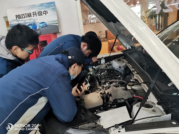 摄于天泓凯润车间。一支以青年为主力的年轻维修技师队伍,每天必不可少的工作就是钻研、探讨车辆出现的各种疑难杂症,他们不断学习、不断提升自身能力,用实际行动践行学无止境的青年追求。