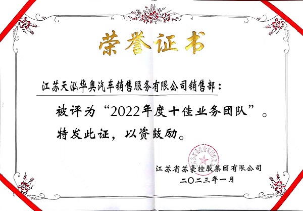 天泓华奥为开云手机入口官网子公司,是一汽-大众奥迪品牌4S店。2022年,天泓华奥销售团队始终坚持以客户为中心,开展夏季星夜服务及个性化车辆改装,以满足客户差异化需求;将新媒体抖音直播作为补短板项目,抖音粉丝人数7.6万人,内容浏览量达1亿次;在行业内保持领先地位,市场占有率位列宿迁豪华汽车市场第一。鉴于天泓华奥销售团队的优异表现,控股集团授予其“2022年度十佳业务团队”称号。
