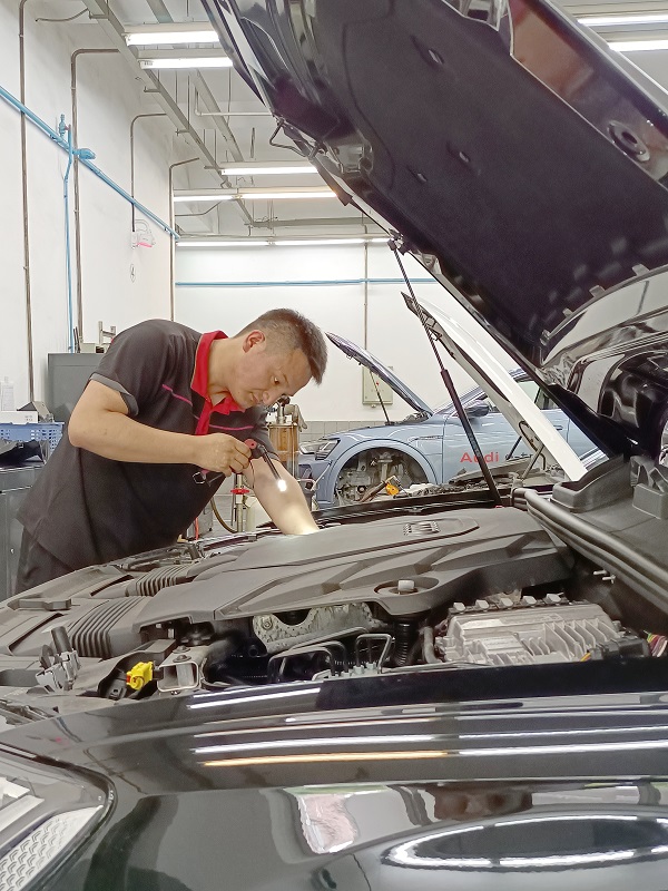 刘志自参加工作以来一直从事汽车维修工作,始终坚守匠心,深深扎根于一线岗位。他深知在汽车维修领域,技术的不断进步是为客户持续提供优质服务的关键,靠着肯干事的闯劲、不怕苦的拼劲,一步一步成长为技术骨干,先后获得奥迪主机厂高级机电技师认证、奥迪经销商技术内训师认证、奥迪经销商高电压技师HVT认证。