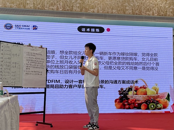 大赛分为笔试、游戏、一站到底、话术提炼四个环节,每个环节都是对金融服务领域技能的全方面考验。话术提炼环节中,选手们结合自身实践经验,提炼出了独特的话术风格,赢得了评委和观众的赞赏。在紧张激烈的竞争中,选手们展现出了对金融服务领域深刻的理解和应用能力,同时还展现出了卓越的沟通和团队合作能力,为观众呈现了一场精彩绝伦的技能较量。经过激烈角逐,江苏康泓刘西仙、王怡诚荣膺桂冠,成为本届比赛的最终胜出者,大赛还评出了亚军两组四名选手及季军三组六名选手。出席比赛现场的上汽通用金融、苏豪天泓有关领导为获奖选手进行了颁奖。