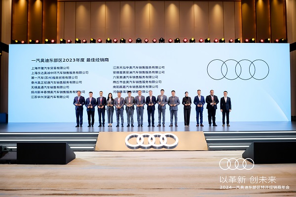 为感谢东部区经销商伙伴一年来的辛勤付出,鼓舞经销商在新的一年再创傲人佳绩,年会对2023年优秀团队进行了表彰。江苏天泓华奥凭借卓越的表现和杰出的业绩,荣获一汽奥迪东部区2023年度最佳经销商奖项。这一殊荣充分肯定了江苏天泓华奥全体员工的辛勤付出,并对他们的工作给予了高度赞扬。