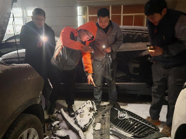 面对恶劣天气下频发的车辆受损情况,双方团队坚守“以客户为中心”的理念,毅然打破常规工作时间,在风雪之夜亮起灯火,开启了这场特殊的“理赔夜市”行动。