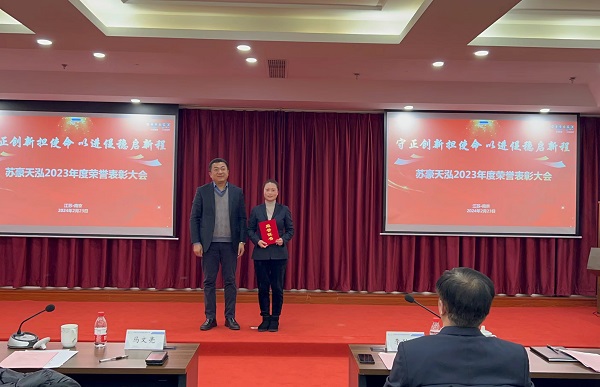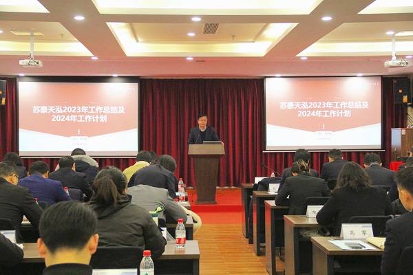 2月23日,苏豪天泓召开2024年经营工作会议暨2023年度表彰大会。会议深入落实苏豪控股集团工作要求,总结回顾公司2023年工作,对2024年经营工作进行部署,动员公司上下振奋精神、锚定目标、奋发有为,按下“快进键”,跑出“加速度”。苏豪天泓党委副书记、总经理李劲峰主持会议。
