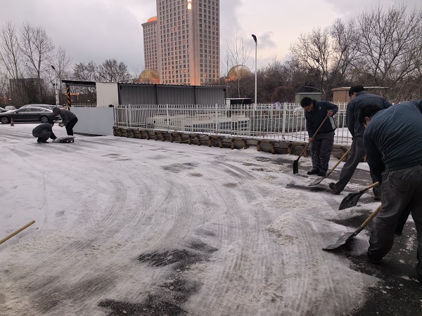 风雪虽寒,人心却暖。经过苏豪天泓人的共同奋战,原本被积雪覆盖的道路变得干净整洁,为客户开辟出了一条条安全畅通的道路。