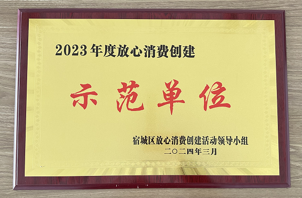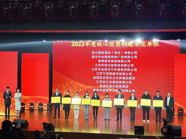 在宿迁市宿城区举办的放心消费创建活动中,天泓楚汉凭借卓越的服务质量和诚信经营的理念,荣获2023年度“放心消费创建示范单位”荣誉称号。