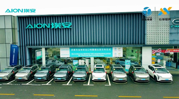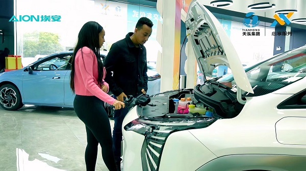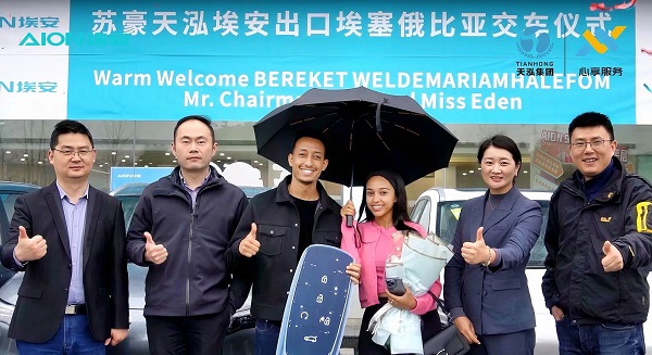 3月27日,9台埃安Y PLUS车型出口“一带一路”沿线国家埃塞俄比亚交车仪式在苏豪天泓南京玄武埃安体验中心成功举行。埃塞俄比亚客户Bere先生和Eden女士出席仪式。