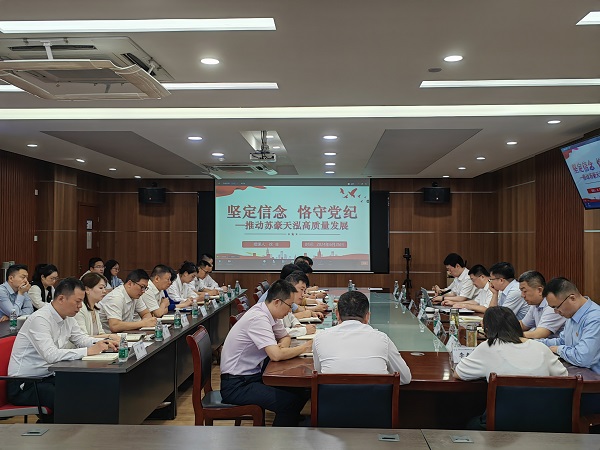 “七一”前夕,公司党委书记徐非讲授题为《坚定信念 恪守党纪——推动苏豪天泓高质量发展》专题党课,紧扣新修订的《中国共产党纪律处分条例》,围绕党的纪律建设的历史沿革、《条例》修订的重要意义和主旨要义、恪守“六项纪律”四个方面,剖析违纪典型案例。徐非强调,一是要强化自我约束,提高免疫能力,凝聚干事创业的精气神;二是要增强遵规守纪自觉,把增强党性、严守纪律、砥砺作风融入日常、化为习惯;三是要敢于善于斗争,坚持把纪律挺在前面,同时要落实“三个区分开来”,不断推动全面从严治党向纵深发展;四是要围绕贯彻落实江苏省推动大规模设备更新和消费品以旧换新行动,在汽车消费促进,充电桩、储能等设施建设,汽车拆解及废旧动力电池回收梯次利用,稳步扩大二手车出口规模等方面集中攻坚,积极拓展新能源、拓展国际市场,聚焦汽车产业强链补链延链,以严的纪律护航保障公司高质量发展。