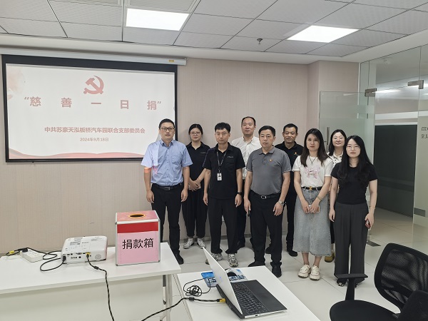 为深入学习贯彻党的二十届三中全会精神和习近平总书记关于发展慈善事业的重要论述,广泛汇聚社会爱心力量,近日,苏豪天泓汽车集团各党支部积极响应公司党委号召,开展“慈善一日捐”活动,共计730余人参加,共筹得慈善款13000余元。