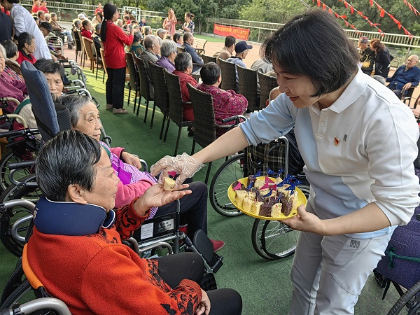 今年已经是党团员代表们连续第四年在重阳节来到南京钟山银城聚宝山颐养中心。每到一处,他们都与老人及其家属热切交谈,询问老人的身体状况、生活起居和饮食情况,并为老人们送去精心准备的重阳糕、水果以及菊花茶。活动中,大家和老人们一起合唱《我的祖国》《中国人民志愿者战歌》等红歌,老人们还带来了手风琴演奏和舞蹈表演,大家在欢声笑语中度过了美好的节日。