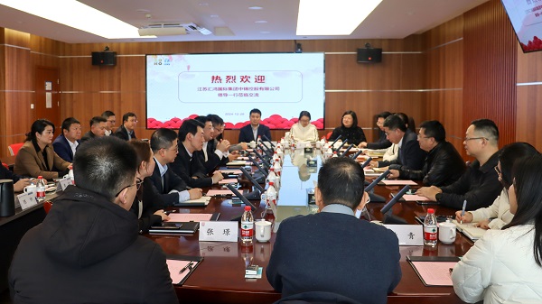 12月20日,汇鸿中锦党委书记、董事长温成刚一行到访苏豪天泓,苏豪天泓党委书记、董事长徐非热情接待,双方就行业间的合作与发展潜力进行交流探讨。