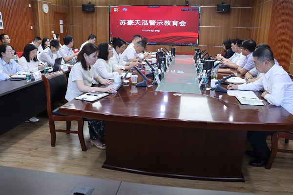 为进一步推动全面从严治党向纵深发展,强化党员干部纪律规矩意识,筑牢拒腐防变思想防线,6月10日下午,苏豪天泓组织开展警示教育会。会议通过剖析国有企业违纪违法典型案例,结合庭审旁听心得分享、集体廉洁谈话等环节,以“沉浸式”警示教育推动警示教育入脑入心。