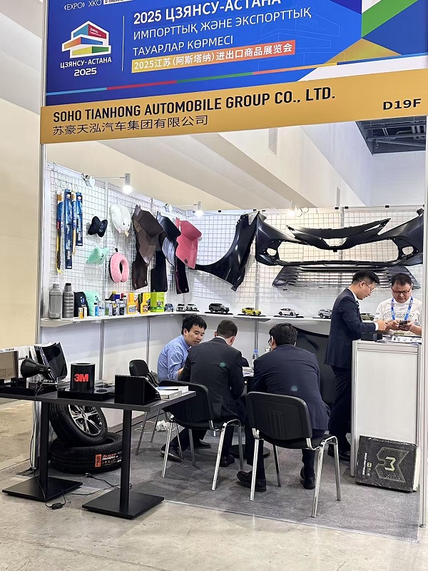 苏豪天泓以“气候适应性解决方案”为核心,展出能在-40℃的极寒环境中仍保持稳定点火性能的单铂金火花塞,高度适配中亚冬季复杂路况。展出的采用静电喷涂技术的全尺寸汽车覆盖件实物,凭借极致工艺成为展会焦点,其漆面平整光滑,表面误差≤0.2毫米,几乎无色差,展现出精湛的制造水准。来自哈萨克斯坦的汽修厂经营者Timur 先生现场验证后惊叹道:“这些覆盖件精度与质量远超本地配件,而价格却低三分之一,性价比令人难以置信!”