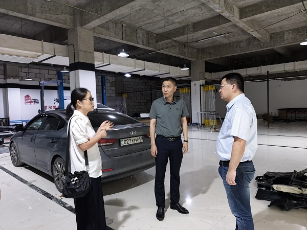 徐非一行首先来到中哈霍尔果斯国际边境合作中心,走访了合作中心管理人员,详细了解纯正二手车出口贸易流程打通情况,向合作中心哈方管理人员、二手车从业人员等了解中亚二手车市场需求。考察了位于合作中心的义乌国际商贸城,向商贸城中从事汽车配件销售、汽车维修业务的商户了解其业务开展情况;与商贸城投资方座谈,了解商贸城关于汽车业务板块的总体规划及招商引资情况。随后,徐非一行来到位于霍尔果斯综合保税区跨境电商产业园内的新疆陆港通国际贸易物流公司,详细了解霍尔果斯口岸整车出口情况,双方围绕海外仓建设以及汽车产业链与供应链物流体系建设等进行了深入交流。