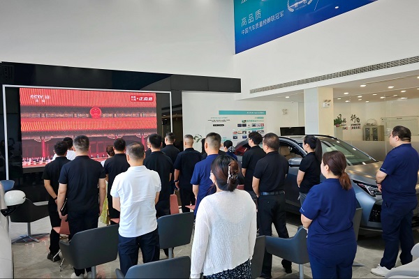 9月3日,纪念中国人民抗日战争暨世界反法西斯战争胜利80周年大会在北京天安门广场隆重举行。苏豪天泓汽车集团组织党员、入党积极分子、发展对象及职工群众观看纪念大会,300余人参与了集中观看,其他职工通过网络直播等方式观看。