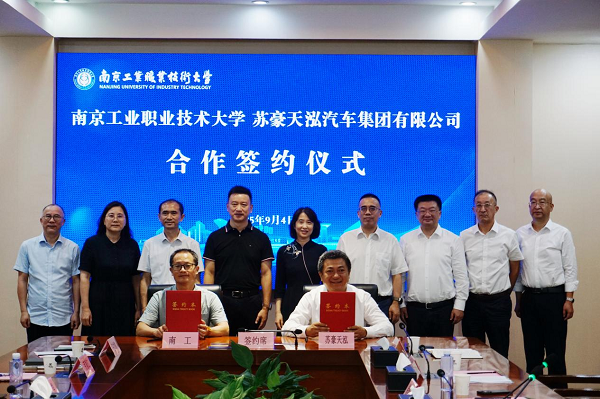 9月4日下午,苏豪天泓汽车集团与南京工业职业技术大学校企合作签约仪式在南京工业职业技术大学仙林校区隆重举行。苏豪控股集团党委副书记陈万宁、党委委员张青峰,南京工业职业技术大学党委书记谢永华、纪委书记邱正祥、副校长魏萍出席并见证签约仪式;天泓汽车集团党委书记、董事长徐非,交通工程学院院长王文凯,商务贸易学院院长阮晓文等参加活动。