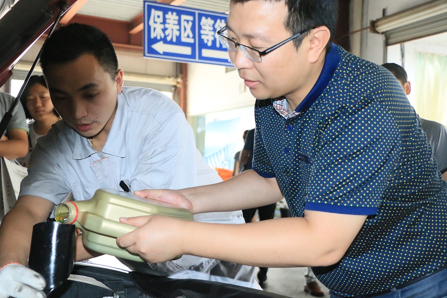 在康泓店展厅,来自嘉实多的专家为车主们讲解了发动机构造、润滑油基础知识、保养常识和常见误区等。在工作人员的带领下,车主首次进入维修车间,零距离见证汽车维修保养过程、聆听技术专家现场讲解,部分车主还体验了自己动手换机油。