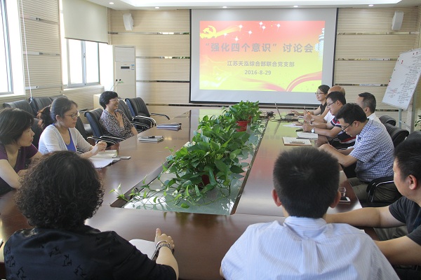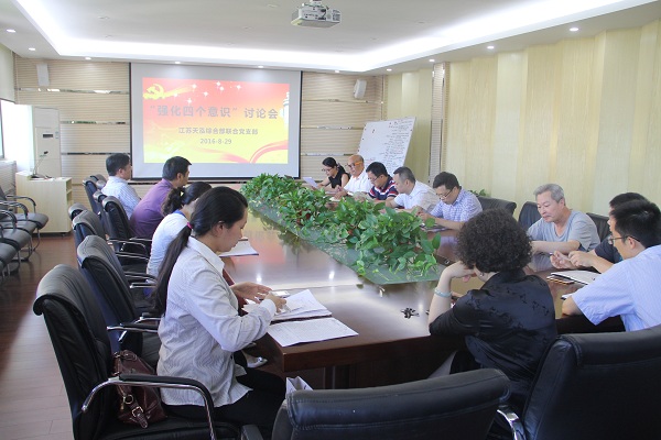 各支部组织学习《习近平总书记视察江苏重要讲话》精神、《习近平总书记系列重要讲话读本》以及《习近平用典》、《党章知识选粹》、《做合格党员》微视频,并围绕“政治意识强不强”、“大局意识强不强”、“核心意识强不强”、“看齐意识强不强”展开大讨论。通过学习,党员干部意识到要时刻保持清醒的政治头脑,保持敏锐的政治观察力和鉴别力,坚定正确的政治立场,始终坚守对马克思主义的信仰、对中国特色社会主义和共产主义的信念、对党和人民的绝对忠诚。