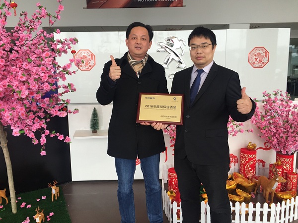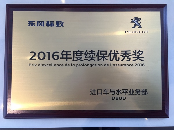 2017年2月8日,东风标致进口车与水平业务部分部总监胡瑜到达天泓标远4S店,并授予江苏天泓标远“2016年度续保优秀奖”荣誉,此奖项是由水平业务部针对全国东风标致店评比后最终选定的,全国仅有十家经销商获此荣誉,标远店作为华东大区唯一一家获得此荣誉的经销商。
