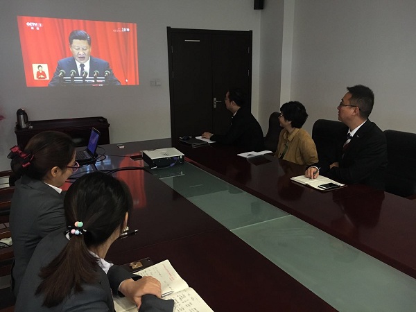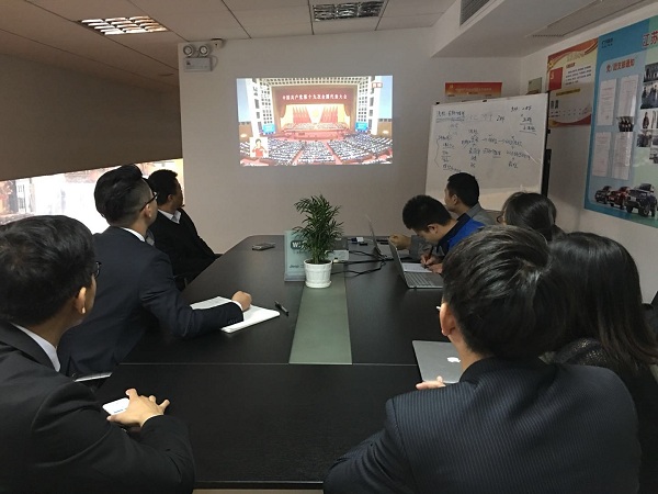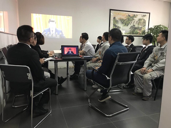 10月18日上午,开云手机入口官网党委组织全体党员、入党积极分子、一线员工共120多人收看了中国共产党第十九次全国代表大会开幕式,第一时间聆听了习近平总书记代表第十八届中央委员会向大会作的题为《不忘初心,牢记使命,高举中国特色社会主义伟大旗帜,决胜全面建成小康社会,夺取新时代中国特色社会主义伟大胜利,为实现中华民族伟大复兴的中国梦不懈奋斗》的报告。