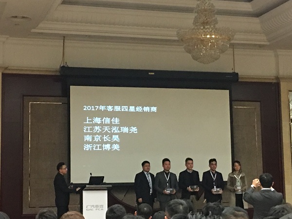 2018年2月6日,广汽菲克全国经销商大会在武汉洲际酒店正式召开,大会对2017年度表现优秀的经销商进行嘉奖。