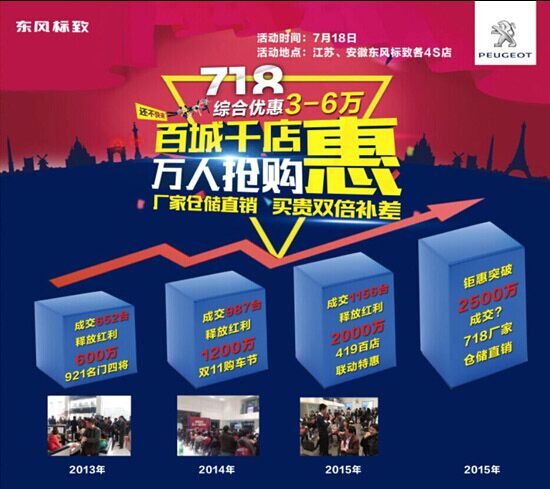 东风标致百城千店万人抢购会,厂家仓储直销,买贵双倍补差!!厂家支持,真真正正实惠让利活动。挑战价格底线,促销力度空前绝后,机不可失!!!