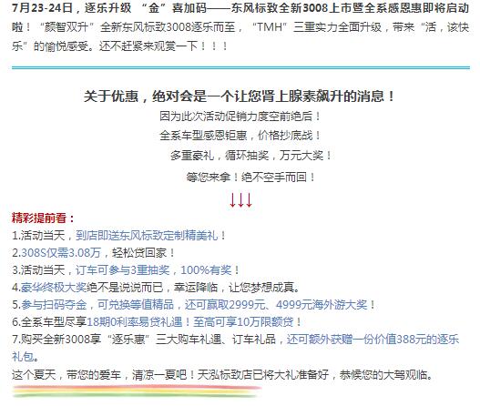 7月23-24日,逐乐升级 “金”喜加码——东风标致全新3008上市暨全系感恩惠